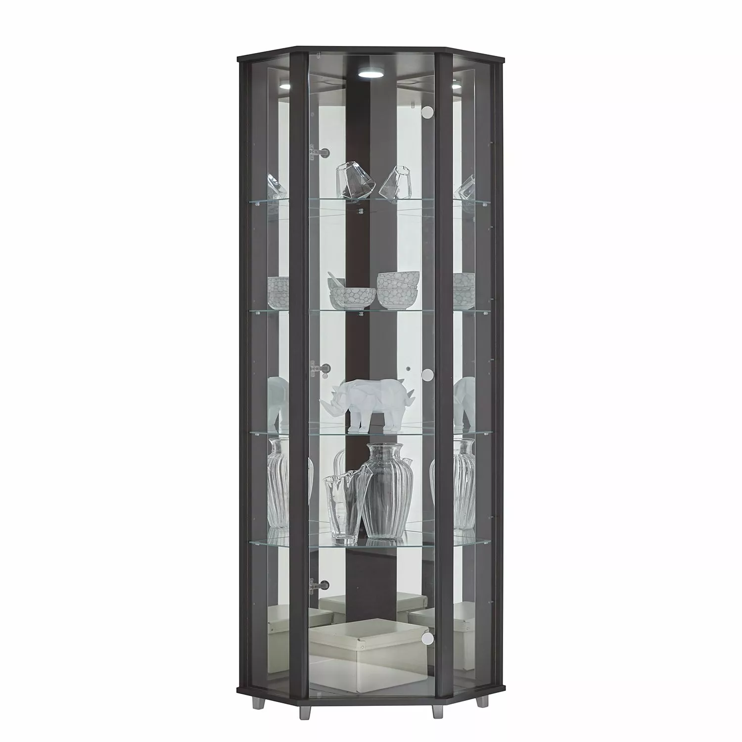 - Contenu de la livraison : vitrine d’angle sans décoration