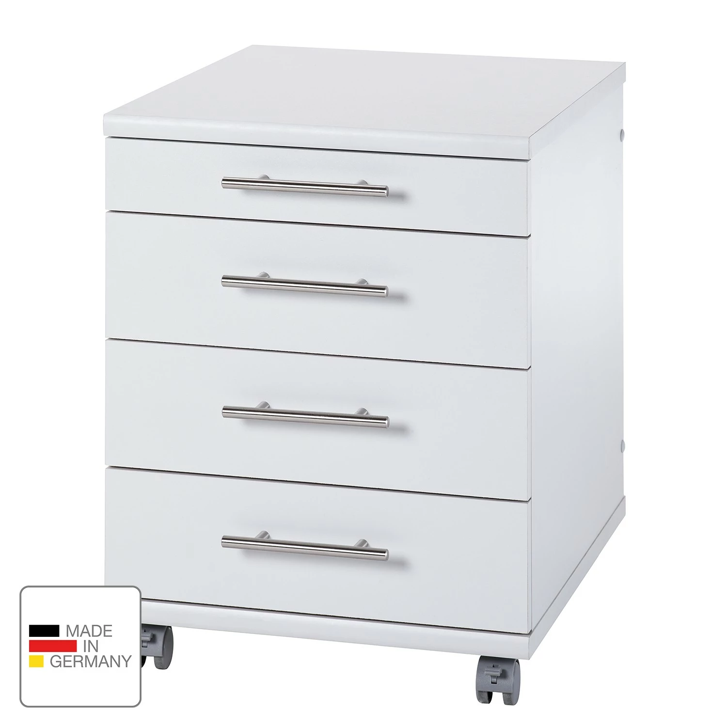 - Poignées et roulettes : matière plastique vernie