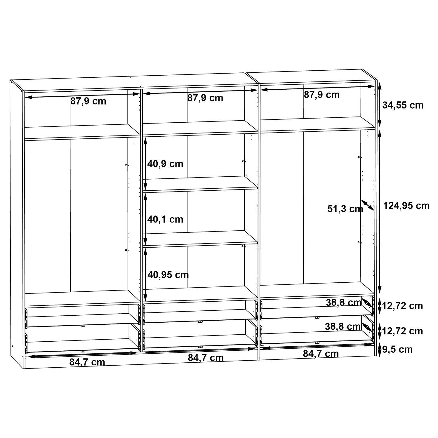 - Dimensions intérieures du tiroir : LxHxP : 84,7 x 12,7 x 38,8 cm
