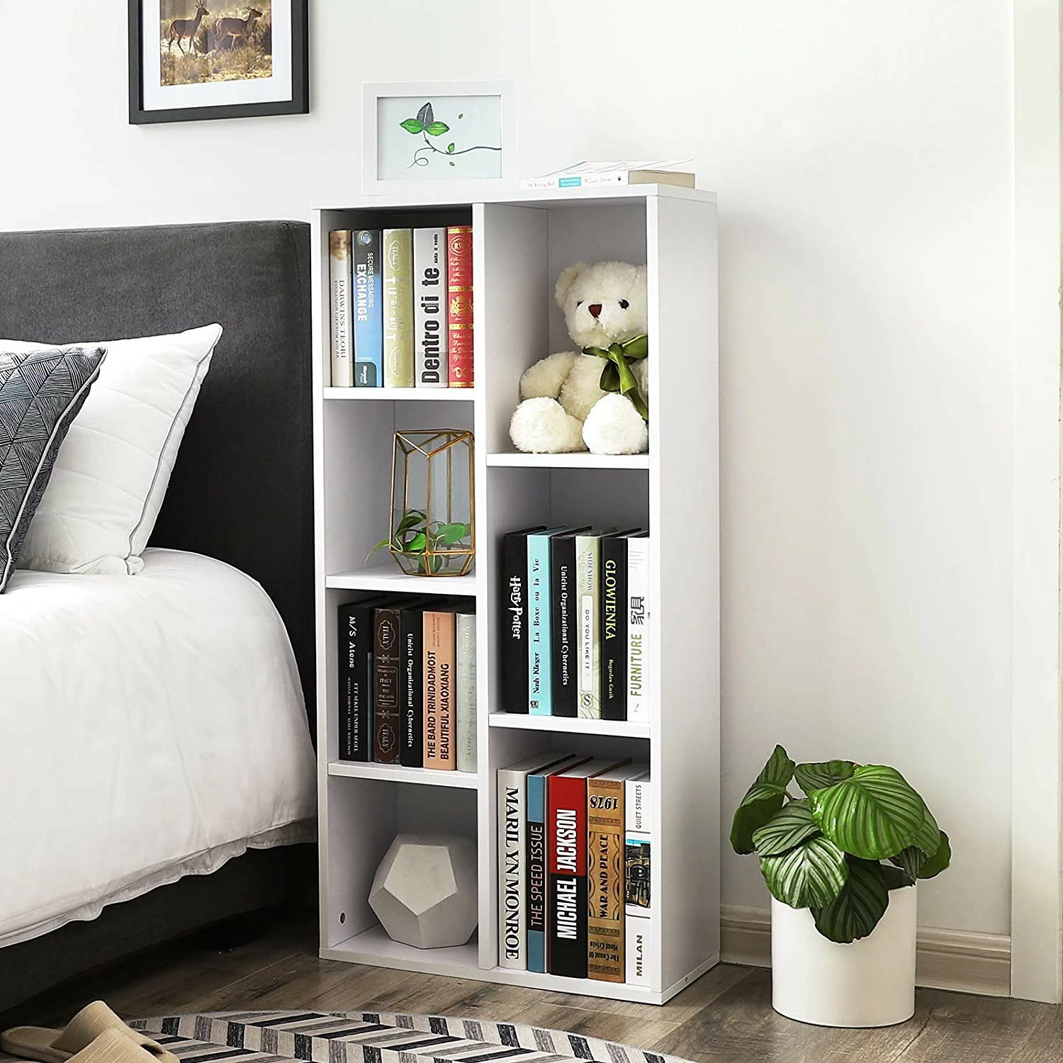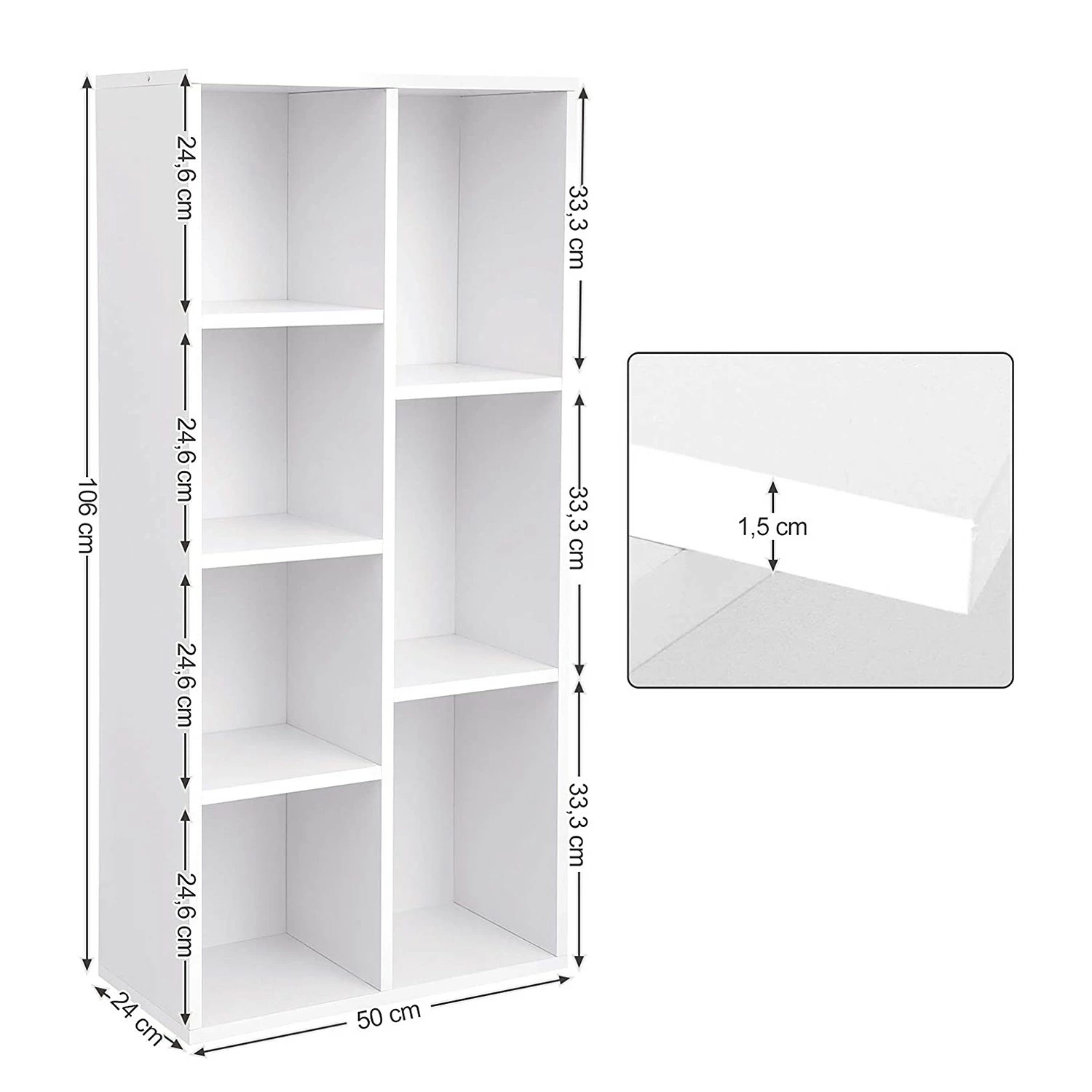 - Corps et étagères : blanc
