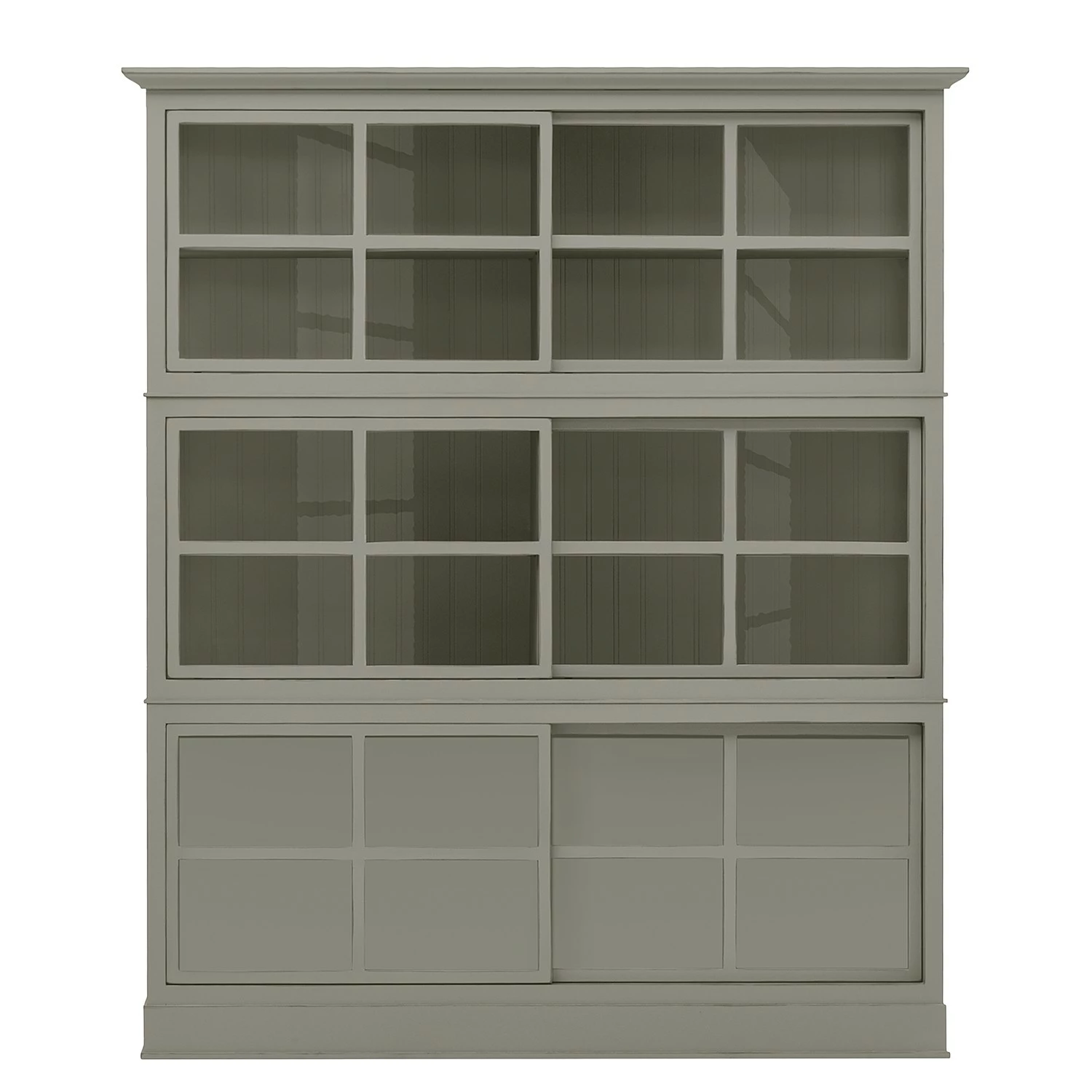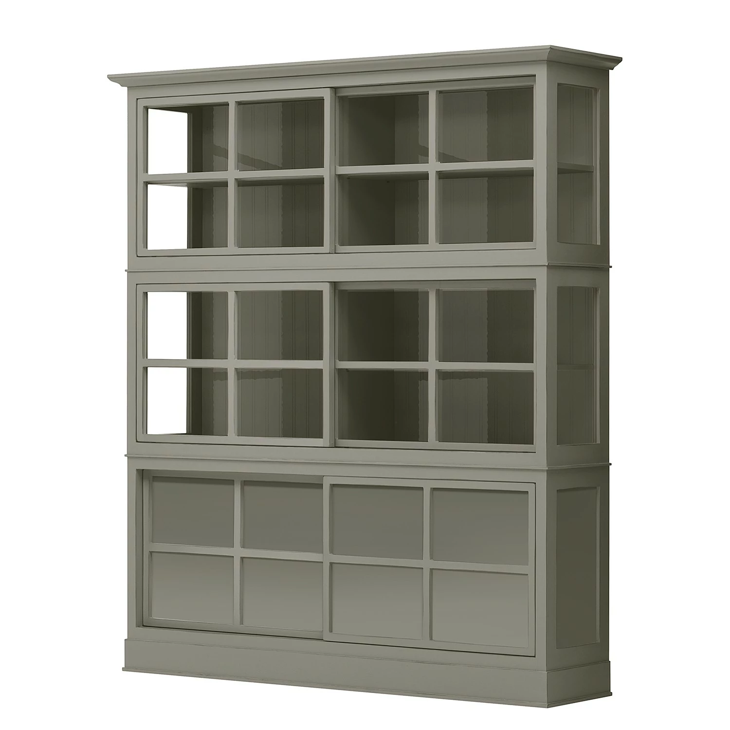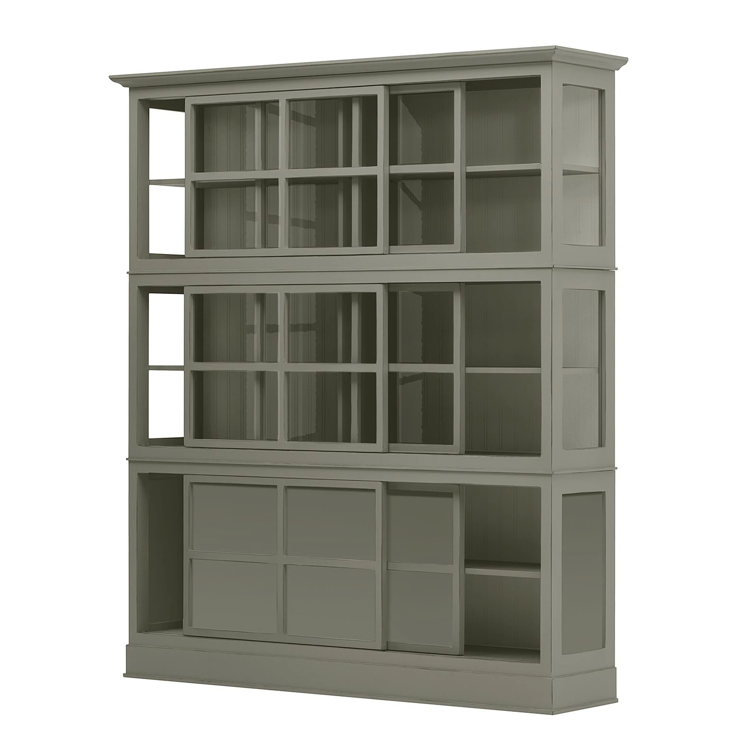 - 4 portes coulissantes en verre et bois, chacune avec 1 tablette
