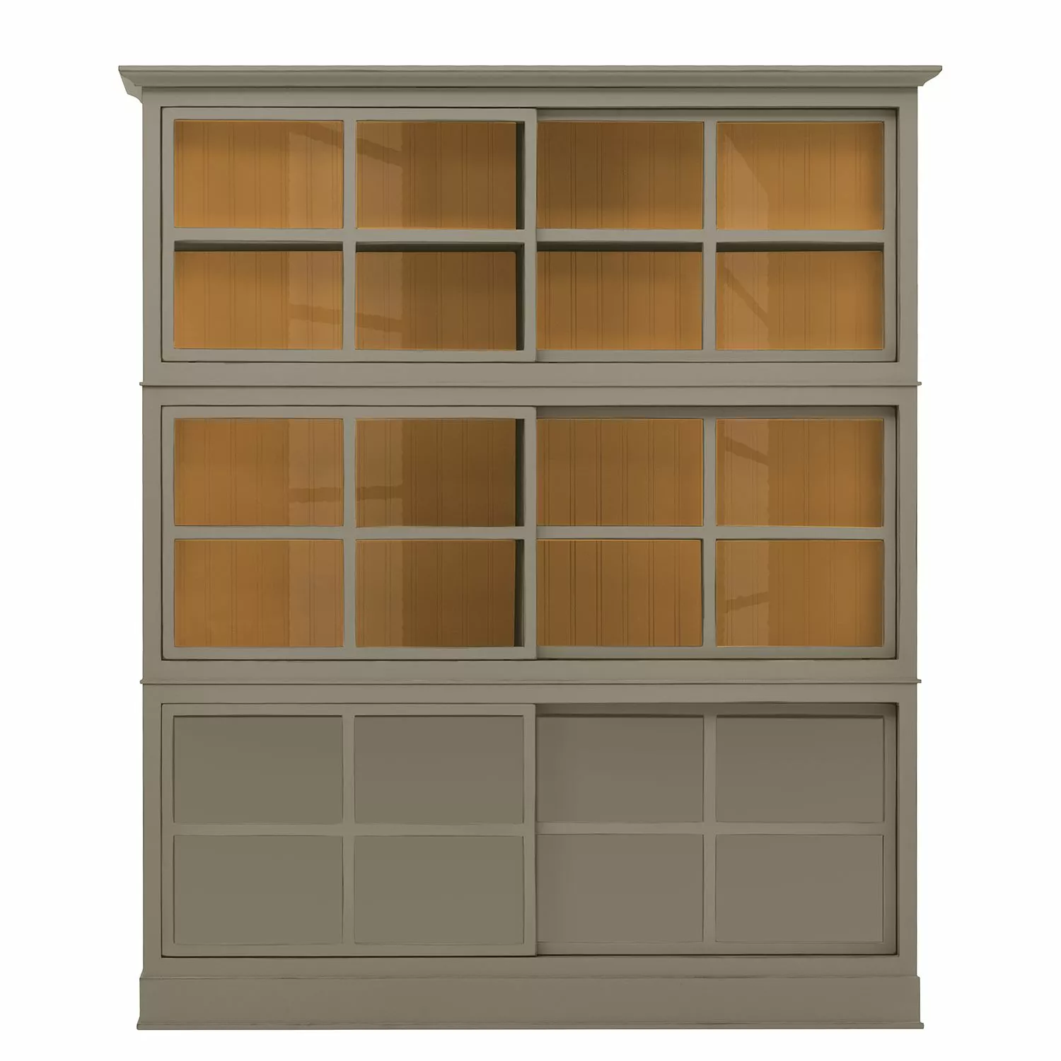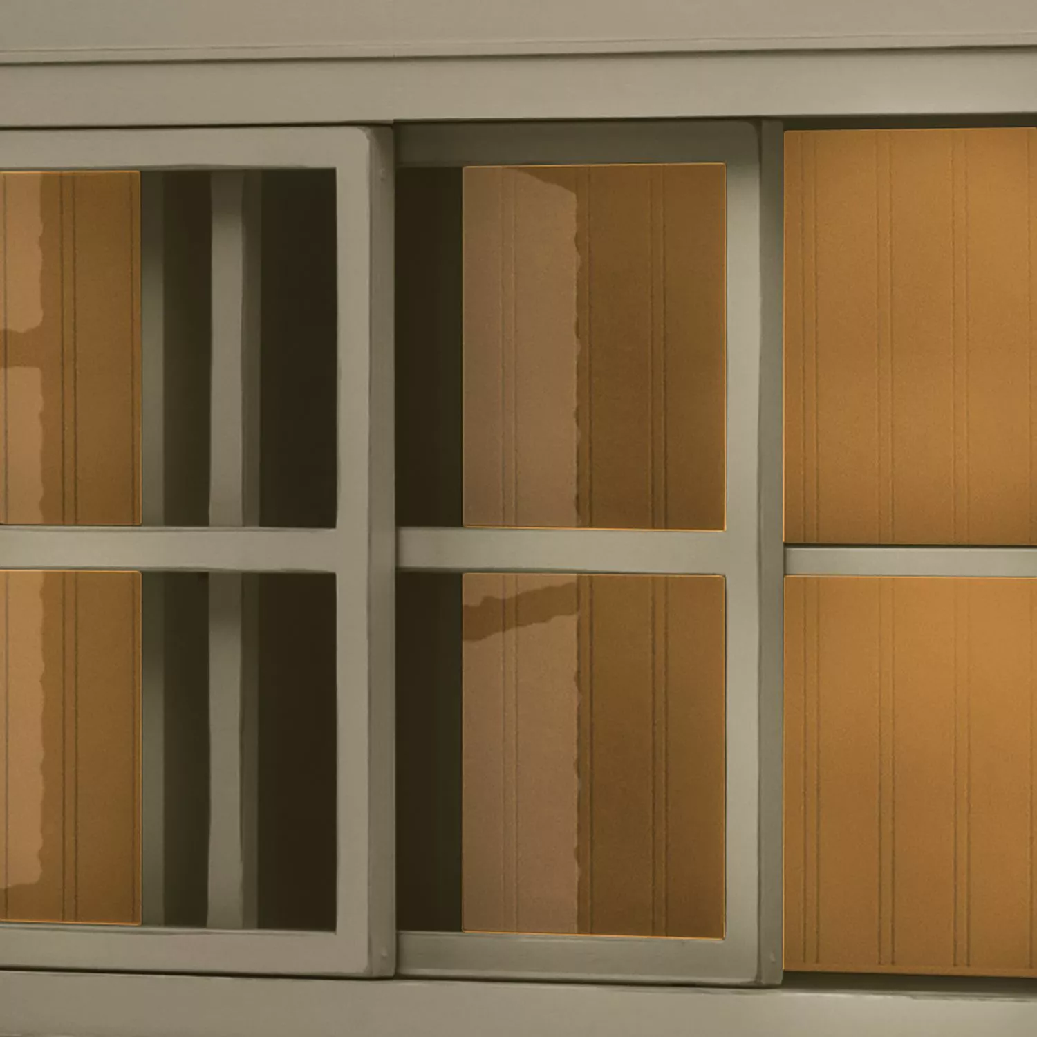 - 4 portes coulissantes en verre et bois, chacune avec 1 tablette