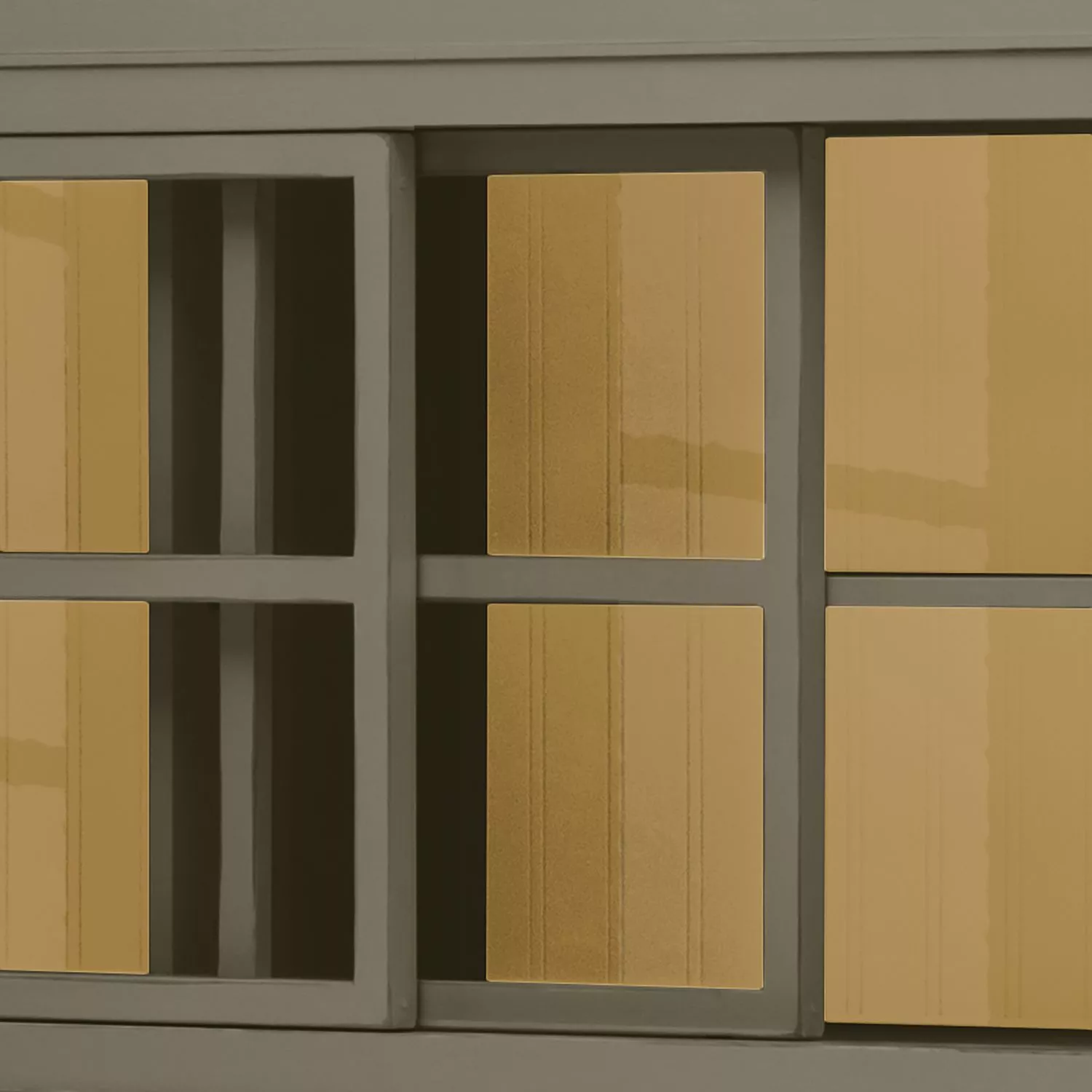 - 4 portes coulissantes en verre et bois, chacune avec 1 tablette