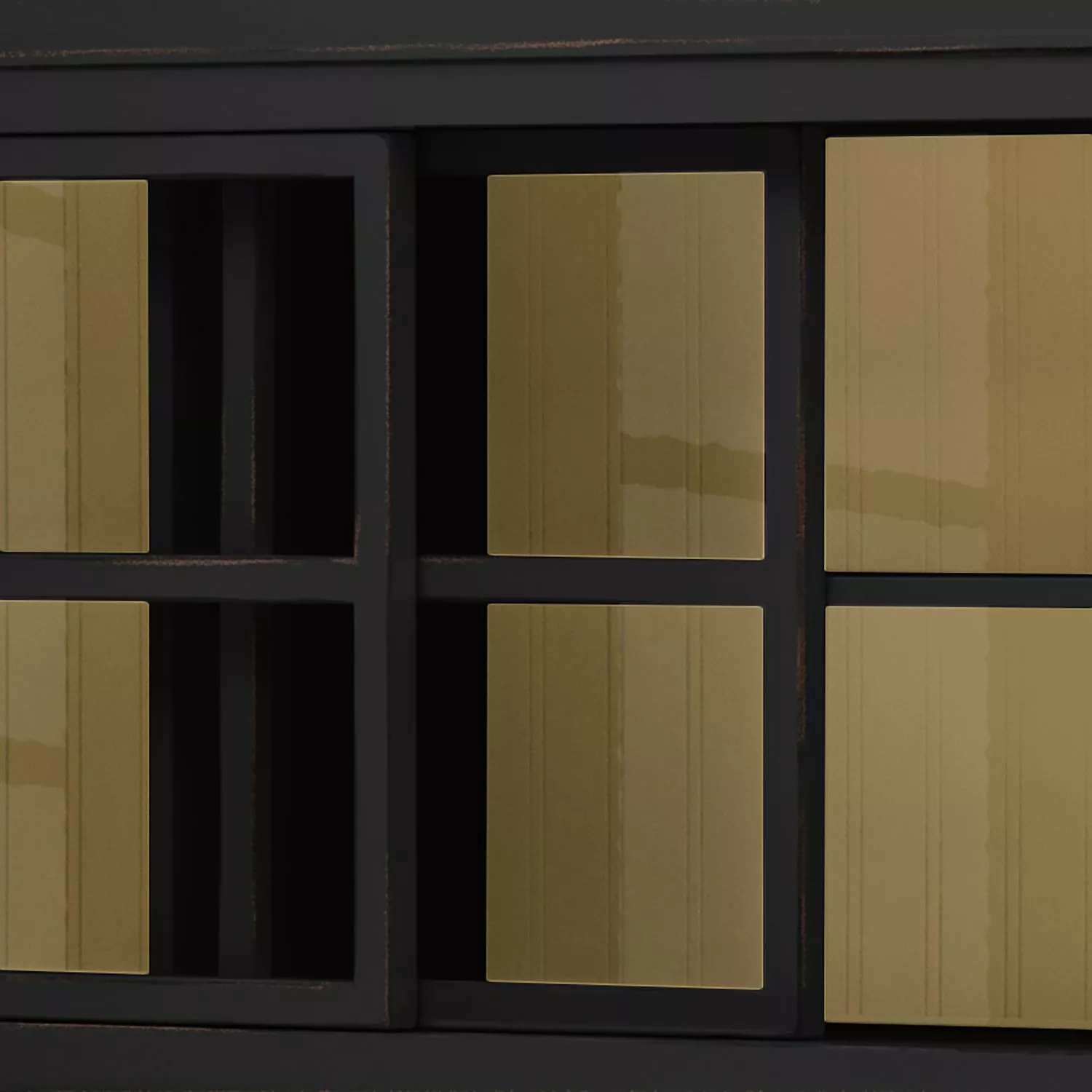 - 4 portes coulissantes en verre et bois, chacune avec 1 tablette