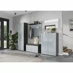 Avin Brillant Armoire Murale Furnitive Anthracite (4 Éléments) Blanc