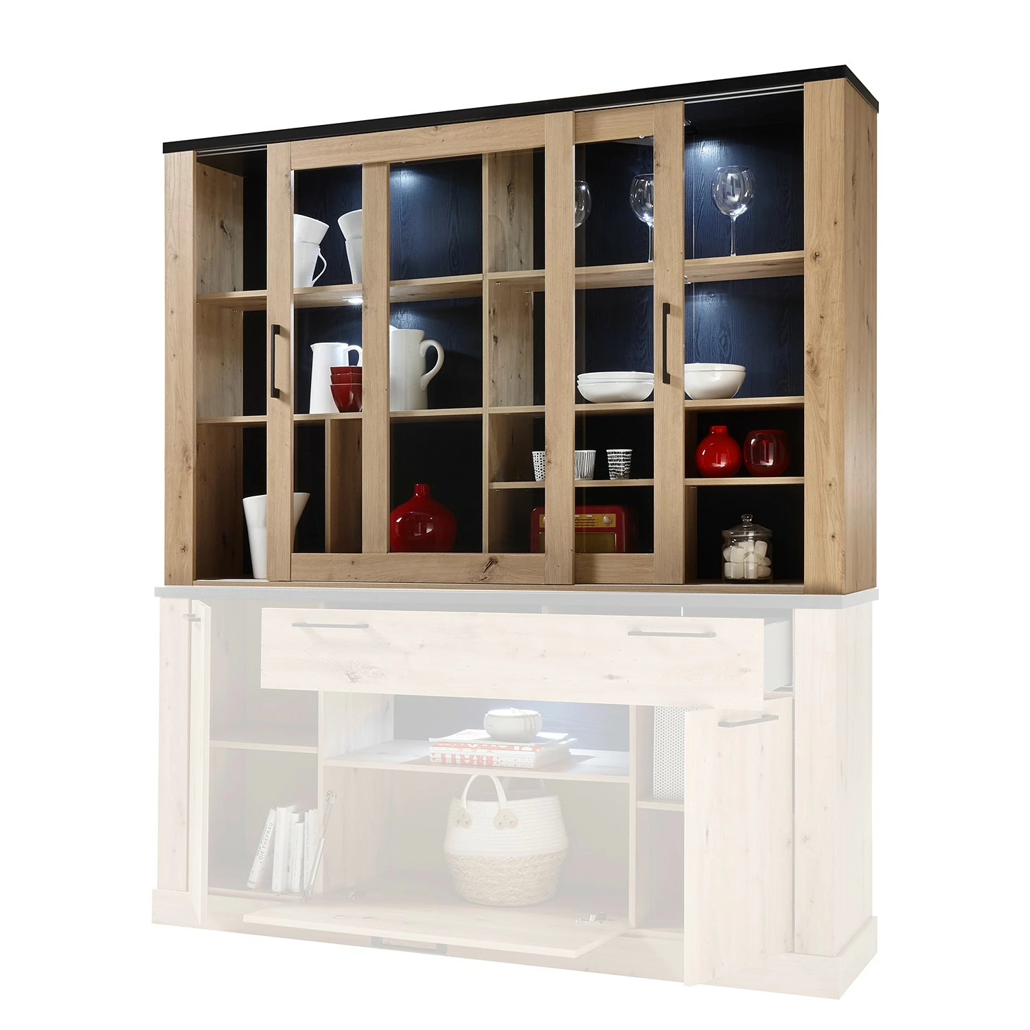 - Contenu de la livraison : Haut de buffet sans éclairage ni accessoires