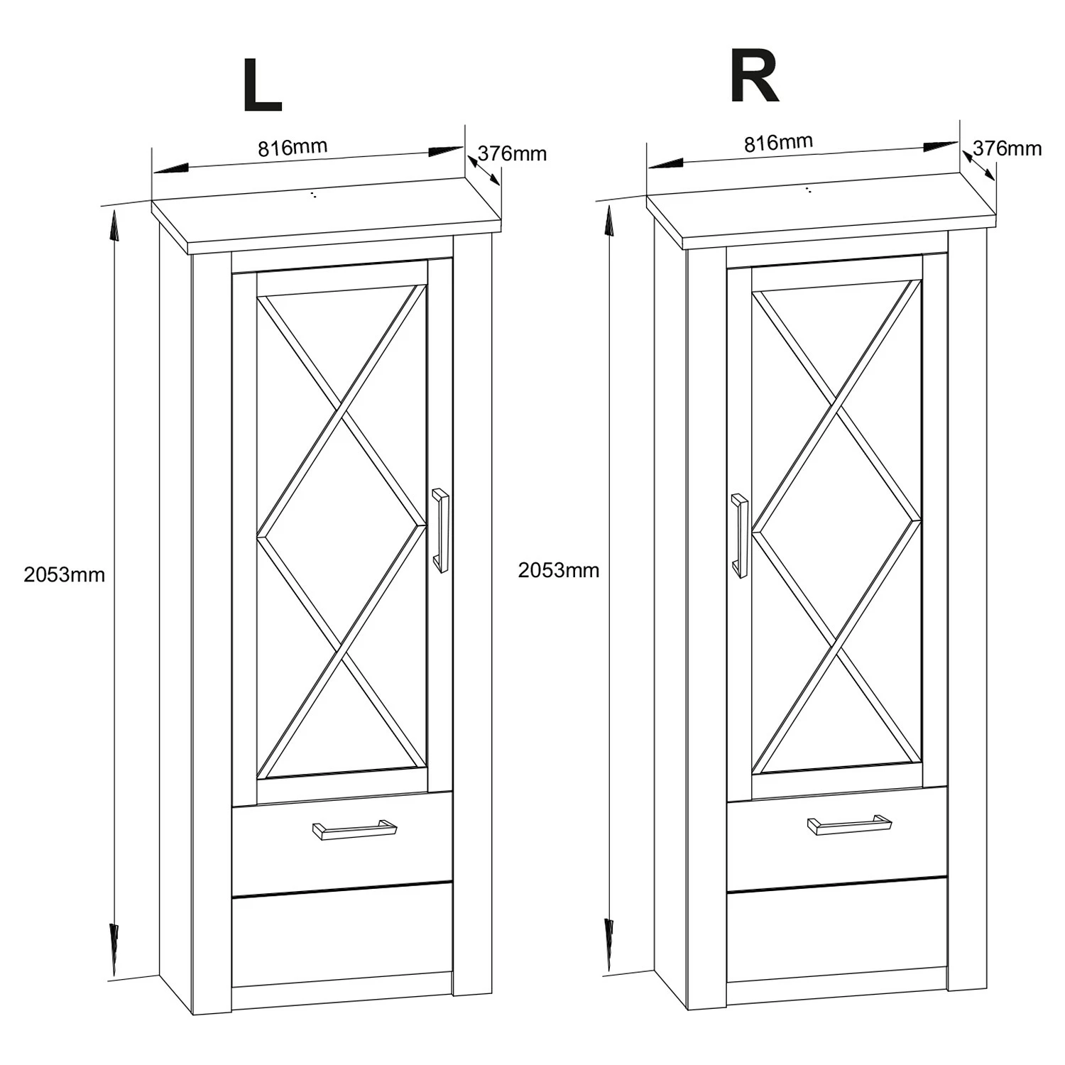 - Contenu de la livraison : Vitrine sans éclairage ni accessoires