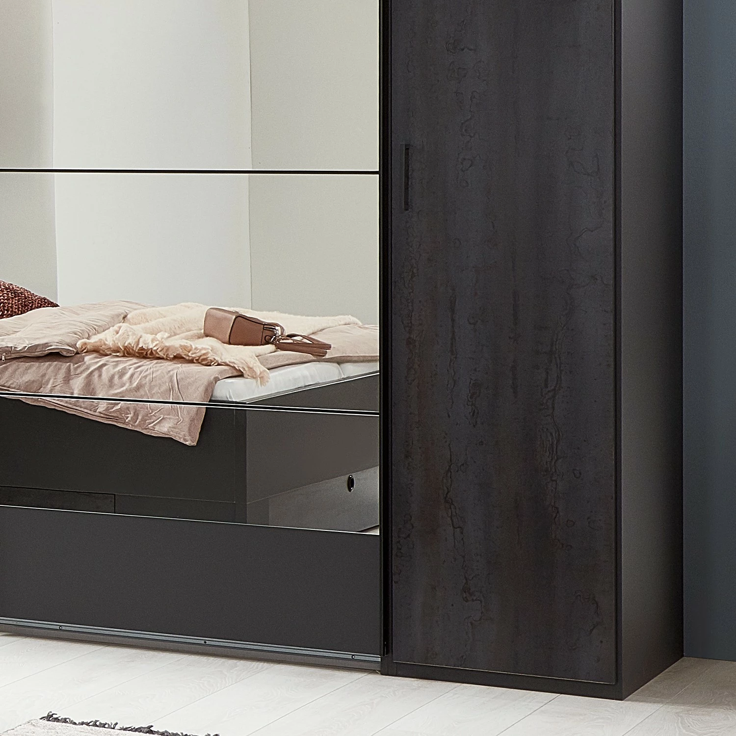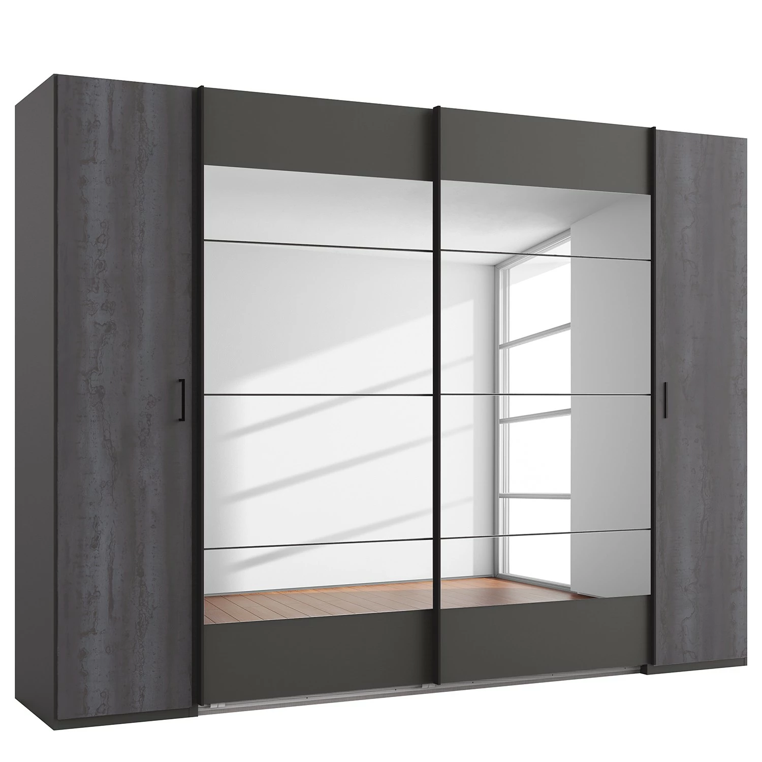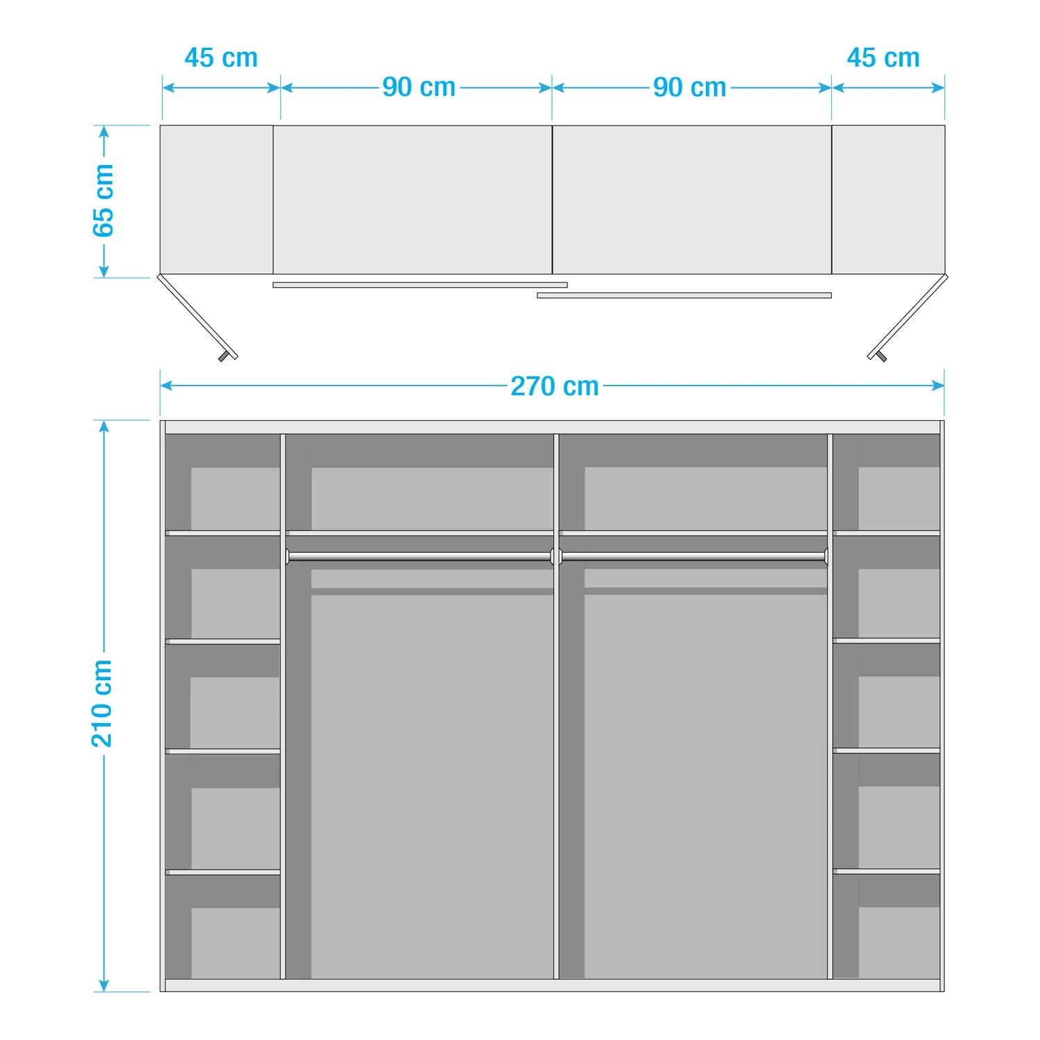 - Contenu de la livraison : Armoire à portes coulissantes avec parties à portes battantes, 10 étagères, 2 tringles à vêtements